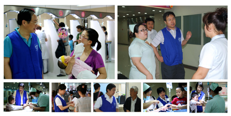 6月22日起,色色啦 在职职工志愿者在急诊楼输液室开始进行志愿服务,服务的内容主要是利用节假日时间为急诊患儿提供引导、咨询、解释、健康教育等服务。金福年书记和黄松明院长以及全体院领导积极报名加入志愿者的行列,带头参加志愿服务。全体职工代表也积极投身到志愿者队伍,在工会的组织安排下,志愿服务开展的活泼有序,得到患儿家长的好评。(工会)
