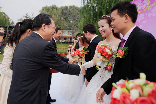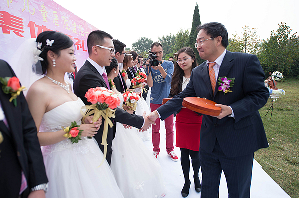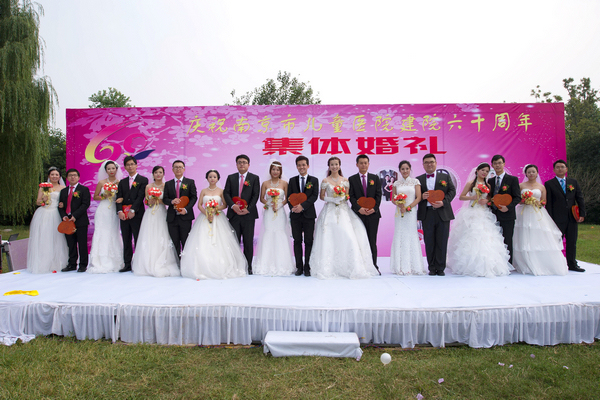 10月20日上午,庆祝建院60周年“同心庆院庆 携手创未来”集体婚礼在美丽的钟山脚下举行。9对新人幸福牵手,共同步入美好的婚姻殿堂。医院领导、同事及亲朋好友一同见证了这一幸福美好的时刻。黄松明院长、金福年书记为新人们送上了印有新人手印的心形纪念相框,让幸福、温暖、感动继续蔓延、传递。