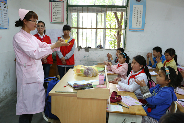 5月4日下午,院团委联合南京医科大学的青年志愿者们一行20余人来到南京宁燕外来工子弟小学,为小朋友们进行体检,并开展了卫生科普宣教活动。志愿者们为小朋友们讲解了口腔保健知识以及常见意外伤害的护理,并为小朋友上了一堂生动的趣味课,让孩子们在娱乐的同时学到了知识。青年志愿者们也希望通过这样的活动,让青春多一些色彩,度过别样的五四青年节。 (团委)