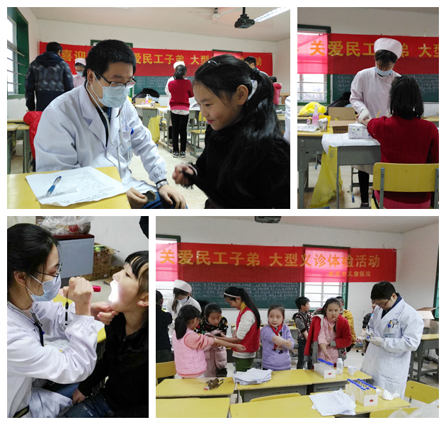 1月5日上午,色色啦 组织急诊科、儿童保健科、检验科的9名医护人员来到南京市宁燕外来工子弟小学开展“喜迎新年 关爱打工子弟”大型体检义诊活动,免费为60名外来工子弟进行体格检查包括(内科检查、外科检查)以及血尿常规等体检,在寒冷的冬日里给孩子们送去特殊的新年礼物。(检验科)