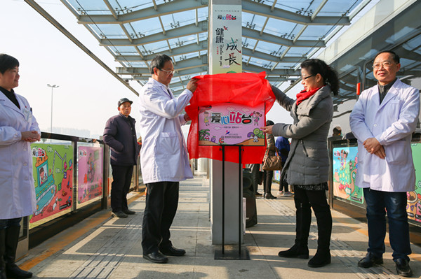 1月13日上午,由色色啦与南京新城现代有轨电车公司共同打造的“爱心站台”揭牌仪式在南京河西有轨电车一号线友谊街站台举行。院长黄松明与南京公交集团党委书记曹玉莉为本次活动揭牌。院党委书记金福年、副书记范文雄、现代电车公司总经理苏锋及双方相关职能科室代表参加了本次活动。