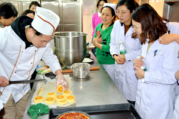 3月13日下午,院工会在河西院区职工食堂举办“三八”妇女节系列庆祝活动——烘焙基础知识与实践培训,近30人参与。面点师傅亲身示范制作披萨、柠檬卷心蛋糕的过程。活动激发了女职工对烘焙的热情和喜爱,在轻松愉快的氛围中收获了快乐,品尝了甜蜜,增长了本领,进一步提升了内涵与素养。(工会 膳食科)
