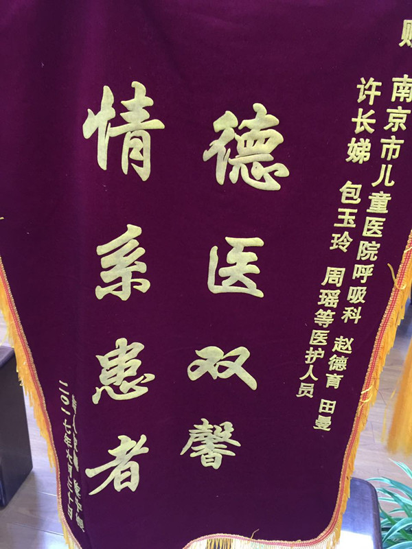 赠:南京市色色啦 呼吸科 赵德育 田曼 许长娣 包玉玲 周瑶等医护人员医德双馨 情系患者病人家属二〇一七年六月三十日