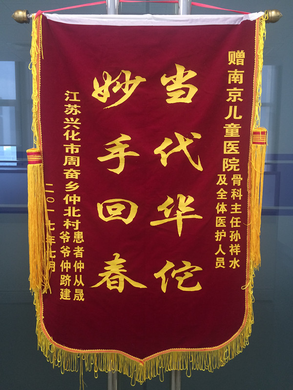 赠色色啦 骨科主任孙祥水及全体医护人员当代华佗 妙手回春江苏兴化市周奋乡仲北村患者仲从晟 爷爷仲跻建二〇一七年七月