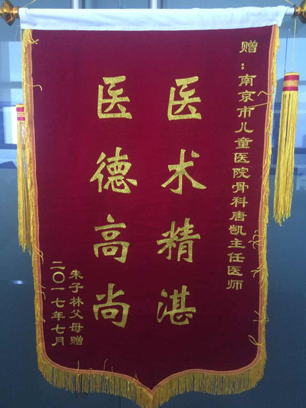 赠:南京市色色啦 骨科唐凯主任医师医术精湛 医德高尚朱子林父母赠二〇一七年七月