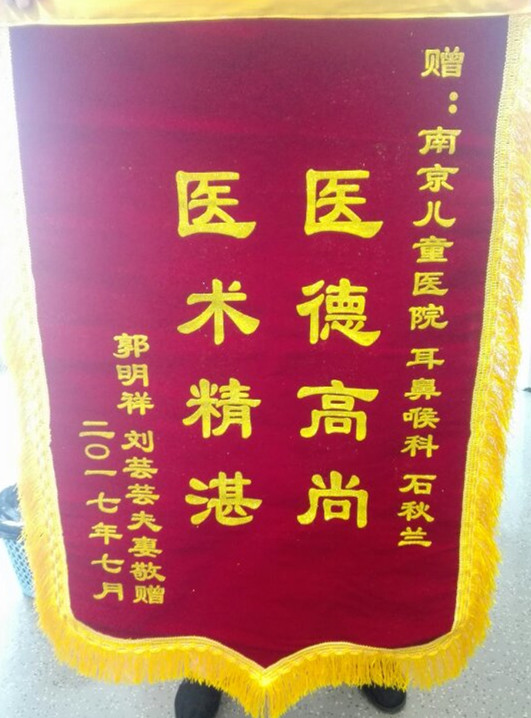 赠:色色啦 耳鼻咽喉科 石秋兰医德高尚 医术精湛郭明祥 刘芸芸夫妻敬赠二〇一七年七月