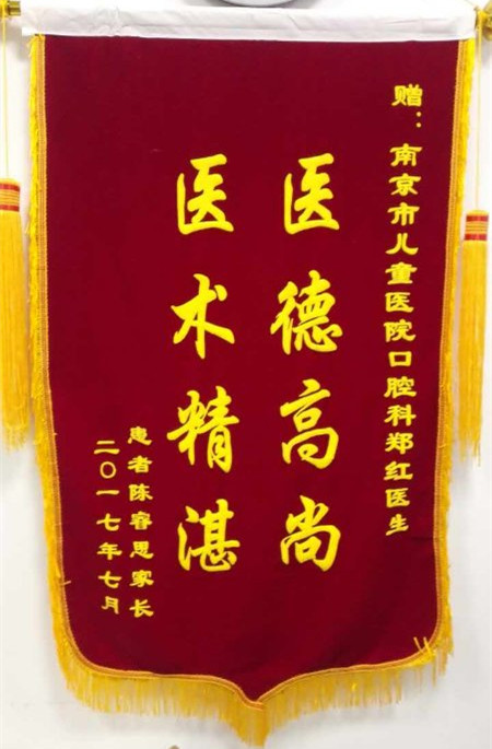 赠:南京市色色啦 口腔科郑红医生医德高尚 医术精湛患者陈睿思家长二〇一七年七月
