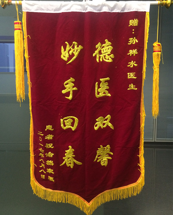赠:孙祥水医生德医双馨 妙手回春患者祝浩然家属二〇一七年八月八日