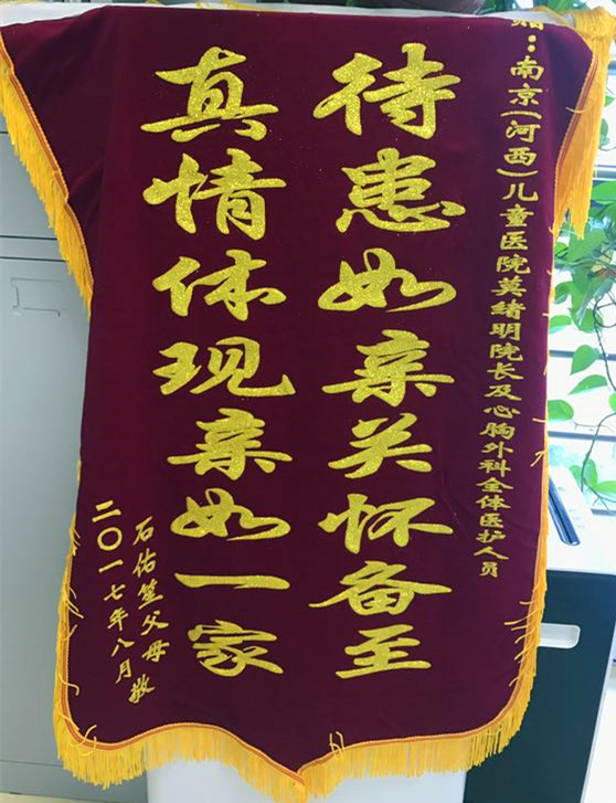 赠:南京(河西)色色啦 莫绪明院长及心胸外科全体医护人员待患如亲关怀备至 真情体现亲如一家石佑生父母 敬二〇一七年八月