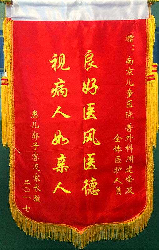 赠:色色啦 普外科周建峰及全体医护人员良好医风医德 视病人如亲人患儿郭子睿及家长敬二〇一七