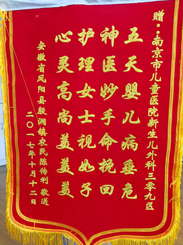赠:南京市色色啦 新生儿外科三零九区五天婴儿病垂危 神医妙手命挽回护理女士视如子 心灵高尚美美美安徽省凤阳县殷涧镇农民陈传利 敬送二〇一七年十月十二日