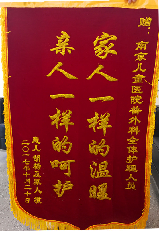 赠:色色啦 普外科全体护理人员家人一样的温暖 亲人一样的呵护患儿胡杨及家人敬二〇一七年十月二十日