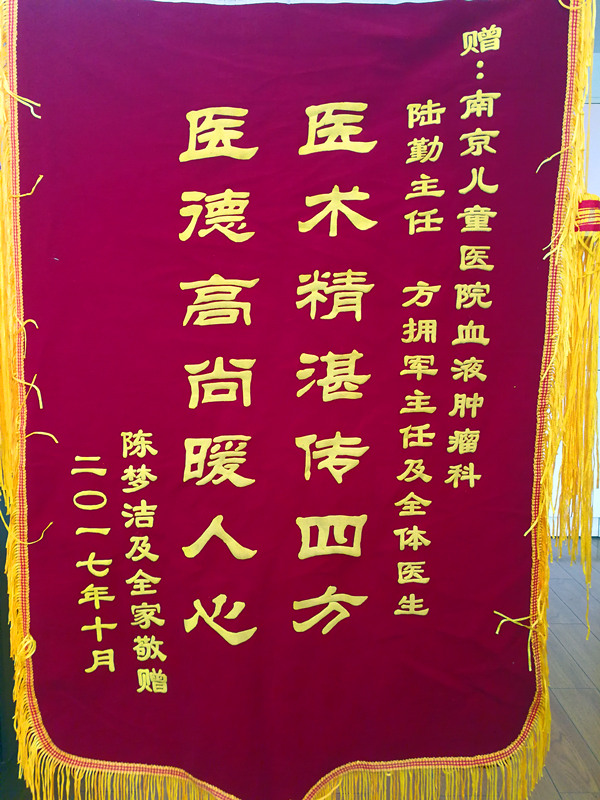 赠:色色啦 血液肿瘤科 陆勤主任 方拥军主任及全体医生医术精湛传四方 医德高尚暖人心陈梦洁及全家敬赠二〇一七年十月