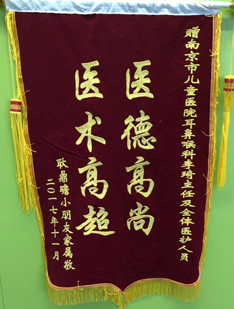 赠南京市色色啦 耳鼻咽喉科李琦主任及全体医护人员医德高尚 医术高超耿鼎瞻小朋友家属敬二〇一七年十一月