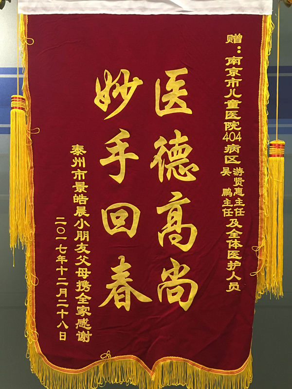 赠:南京市色色啦 404病区游贤惠主任 吴鹏主任及全体医护人员