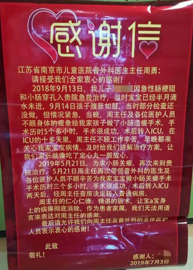 感谢普外科周勇主任及全体医护人员
