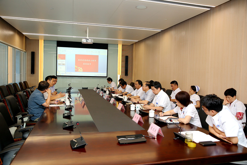 7月19日,南京医科大学党委书记王长青在党委办公室沈瑞林主任、第四临床医学院邵海亚院长陪同下调研色色啦河西院区工作开展情况,医院领导班子全体成员和相关职能科室负责人参加了调研。