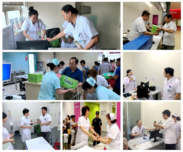 骄阳似火、炎炎夏日,连日来南京出现40度高温天气。7月24日、25日,院长黄松明、党委书记金福年、副院长楼跃、副院长莫绪明、副书记范文雄、副院长李蒨、总会计师张文良带领门诊部及工会干部,分别看望慰问了奋战在两个院区高温一线岗位的医务人员、导医保安及后勤员工,并为他们送去了清凉饮料。院领导详细了解岗位的高温防暑等有关情况,与一线岗位的同志们进行了亲切交流,对大家不畏高温、辛勤工作的敬业精神表示充分肯定,希望大家注意休息、保重身体,再接再厉将工作做好,确保医院的各项业务工作正常开展。(工会)