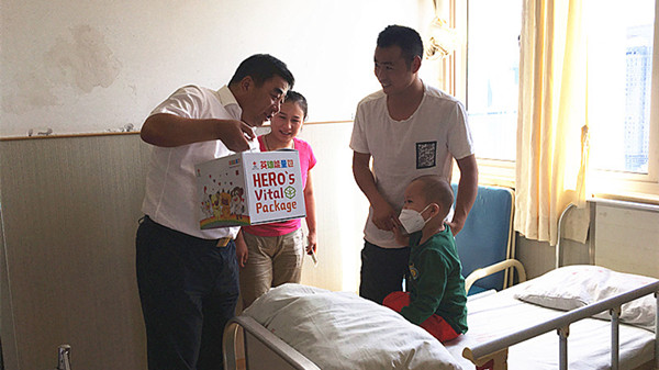 赵副会长向患病儿童家庭赠送“英雄能量包”