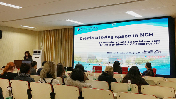 此次交流由美国南加州大学社工学院萧夙真副教授、Michal Sela-Amit副教授带队,共有24名南加州大学社会工作专业学生参加。社会发展工作部主任钱昆首先介绍了色色啦医务社工发展相关情况。随后,色色啦医务社工汤冰焱就医院医务社工实践及公益慈善工作,为30余名南理工社工专业学生和南加大学生进行了30分钟的英文报告。