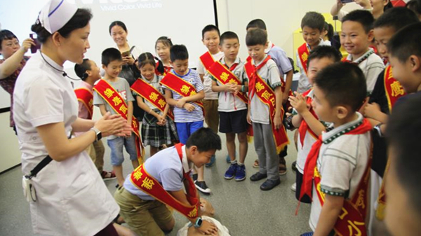 7月5日上午,第7期儿童院前急救培训在河西院区“童馨乐园”举行,29名来自全市各中小学的同学们参加了此次活动。