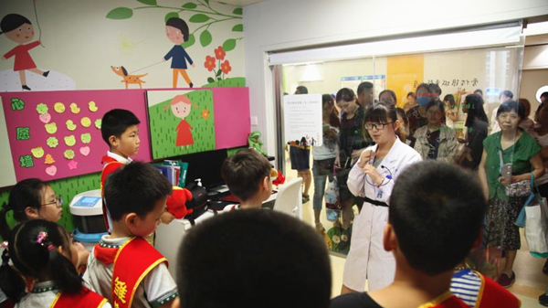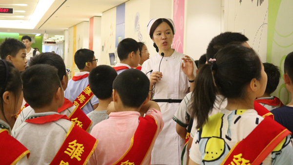 每年寒暑假期间,医院都会开展多场儿童医疗职业体验及健康科普实践活动,此次参与活动的29名同学均来自江苏电视台组织的“假日雏鹰小分队”。