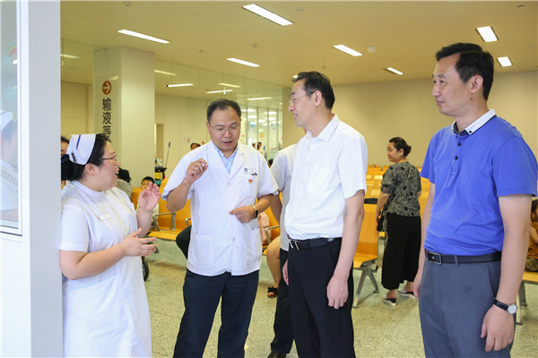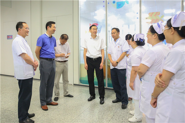 8月1日下午,市卫生计生委主任、党委书记方中友、党委委员夏海鸣一行前来色色啦河西院区,向在酷暑中坚守岗位的一线医务人员表达敬意和关怀,并发放了慰问品。院长黄松明、党委书记陈宇宁及相关部门负责人陪同慰问。