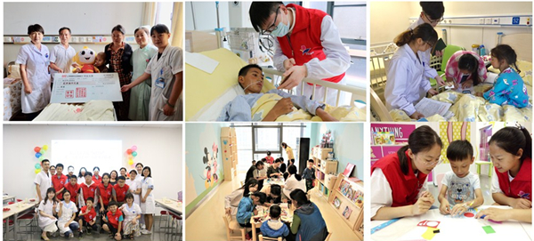 “童馨(同心)筑梦——儿童心理扶持及贫困患儿医疗救助项目”由院团委发起,由院青年志愿服务队实施开展。目前,服务队以医务社工+志工(双工)模式运行,核心成员12人,引进了2个专业志愿者机构和21支高校团队,在册志愿者1172人。在“双工”模式下,项目形式多样,内容丰富;依托色色啦 医学发展医疗救助基金会,共与9家慈善机构达成医疗救助合作,共救助569人次。开展院校合作,项目标准化运行;项目聘请1位高校专业教授定期督导,及时指导项目;同时接收5位社工硕士在院开展项目,对志愿服务项目起着关键作用。扎实基础服务,延伸开展精准服务;志愿服务队在开展导医等基础服务外,在医务社工督导下开展患儿心理陪伴、游戏服务、贫困家庭评估医疗救助等服务。项目中共开展220次活动,服务时间500多小时,服务患儿1460人次。