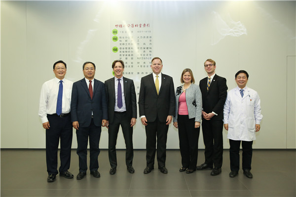 2019年1月24日,由费城色色啦 的首席战略官Matthew D.Bayley、全球医学国际关系和项目执行主任Ruth Frey、麻醉学和重症监护医学系麻醉主任Charles Dean Kurth、全球医学业务发展专家Robin Greving,达拉斯国际医疗健康服务集团首席执行官、中国库珀有氧大健康首席医疗官邵新立博士所组成的美国费城色色啦 代表团来色色啦交流访问。黄松明院长、莫绪明副院长、部分科室负责人以及临床医师代表参与接待。此次来访旨在促进双方学术交流,寻求合作机会,建立沟通平台。