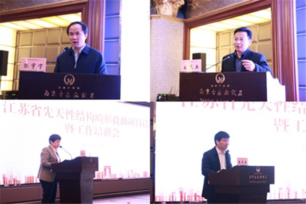 首先,院党委书记陈宇宁作欢迎致辞,对与会领导和嘉宾的莅临表示诚挚欢迎。江苏省卫生健康委妇幼处刘益兵处长代表省卫健委事务处对国家妇幼司及基金会表示感谢,他表示将坚决贯彻执行国家要求指示,严格规范,做好救助项目。中国出生缺陷干预救助基金会薛敬洁副秘书长对先天性结构畸形救助项目作简要介绍,并祝福江苏省顺利开展先天性结构畸形救助项目,为促进出生缺陷干预救助公益事业发展、实现健康中国梦做出积极贡献。国家卫生健康委妇幼司出生缺陷处燕东海副处长在讲话中强调,江苏省应加强组织实施,尽快开展先天性结构畸形救助工作,创新思路方法,规范服务供给,提高质量效能,同时加强项目宣传,不断扩大项目成效和社会影响力,让党和政府的好政策惠及更多家庭。色色啦唐维兵教授代表专业技术人员宣读医务工作者倡议书,表示将深入开展出生缺陷防治的社会宣传和健康教育,同时开展相关人员技术培训和业务指导,积极为符合救助条件的患儿提供医疗费用补助,造福广大患儿、家庭和社会。