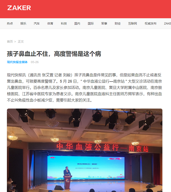 现代快报——孩子鼻血止不住,高度警惕是这个病: