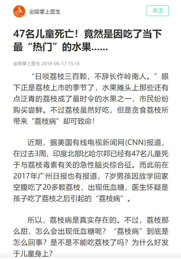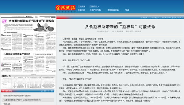 金陵晚报——贪食荔枝所带来的“荔枝病”可能致命: