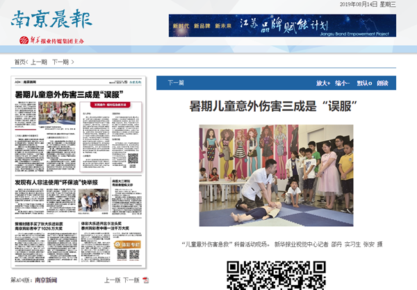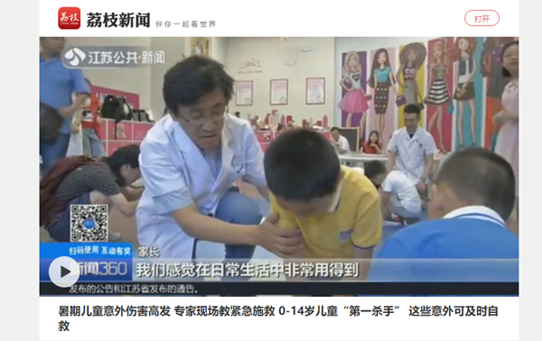 2、江苏公共《新闻360》:暑期儿童意外伤害高发 专家现场教紧急施救 0-14岁儿童“第一杀手” 这些意外可及时自救
