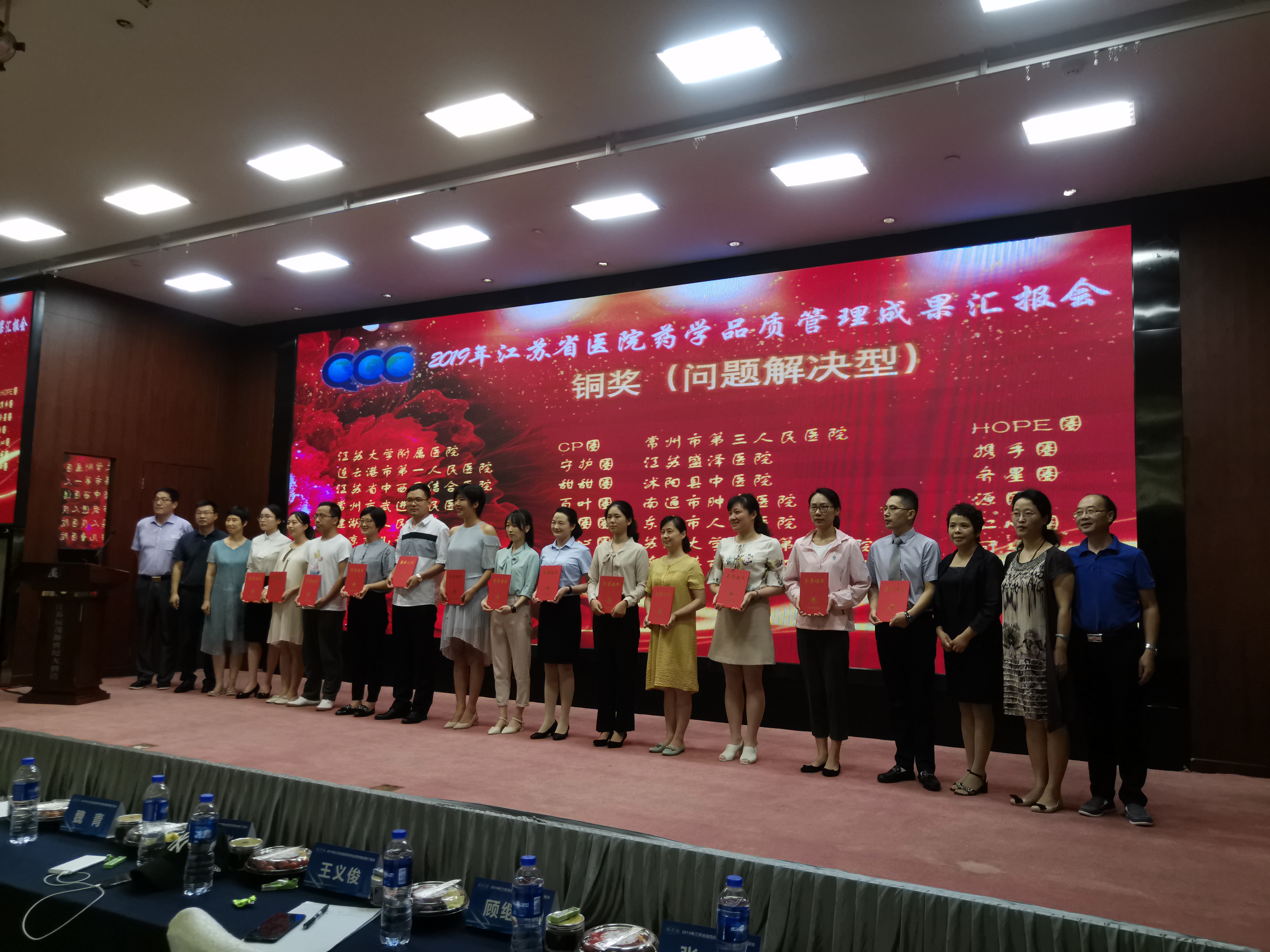 近日,药学部品管圈“泉心圈”在2019年江苏省医院药学品质管理大会上和江苏省医院协会2019年医院品管圈大赛中分别荣获铜奖和优秀圈组二等奖。
