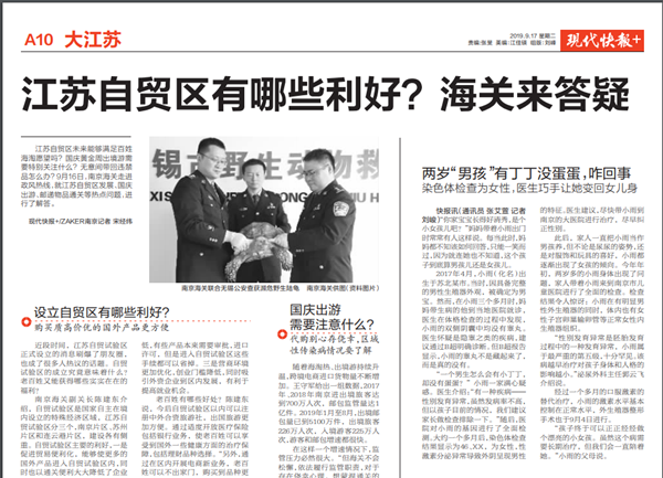 11、《南京新闻广播》:两岁半“男孩”一查染色体竟然是个女孩 医生巧手让她变回女儿身
