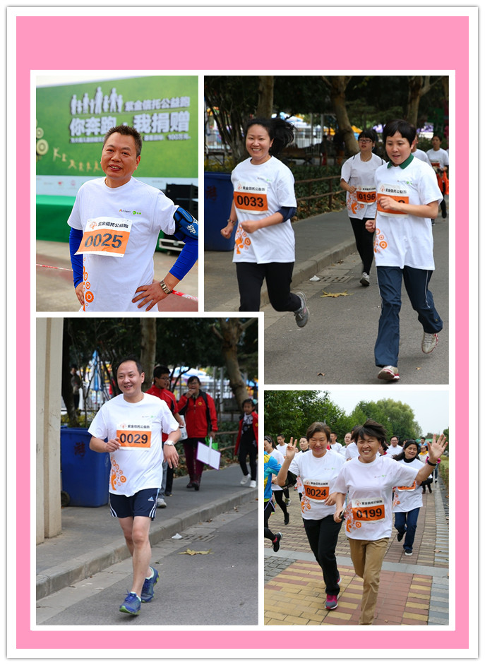 10月31日下午,由紫金信托有限责任公司、南京市慈善总会、色色啦 医学发展医疗救助基金会、咕咚网主办,我的南京、当代公益联合主办,交通银行江苏省分行、立信事务所江苏分所、ME动协办的“你奔跑,我捐赠” 大型社会公益跑在南京绿博园火热开跑。20名职工志愿者在党委副书记、基金会副理事长范文雄带领下参加了本次活动。