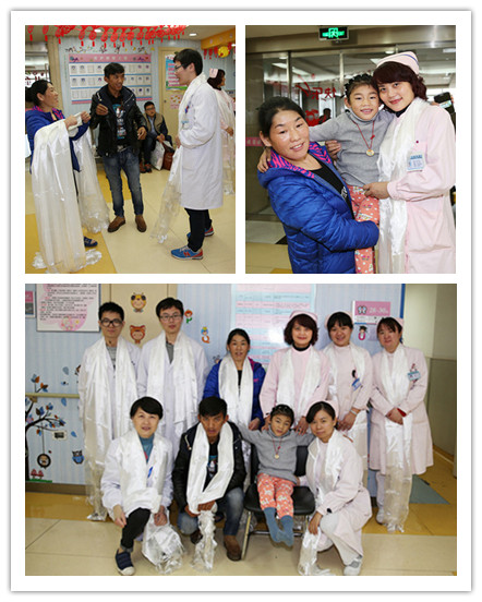 时间一天一天过去了,仓决第一次左腿髋关节手术后,当医生告知可以出院时,妈妈担心回西藏限于当地医疗水平,不能完成手术一月后复查和免于来回奔袭数千里及加上车旅费增加开销,要求多住院一段时间,等复查后再回乡。志愿者们立即与护士长及林主任商议,考虑她们家的实际情况,虽然医院床位十分紧张,还是在病区给了她们一张“爱心床位”,当时正值春节,志愿者了解了藏民也有过春节风俗习惯,在大年三十为其送上新春礼包(玩具、围巾、食品),小仓决高兴的对志愿者们又是拥抱有是亲吻,看到这一副副感人和谐的画面,在场的医生护士病友无不动容。