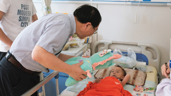 仪式结束后,在医务社工的引导下,色色啦 基金会理事长金福年一行来到病房,为孩子们送上六一节礼物,祝福他们早日康复。