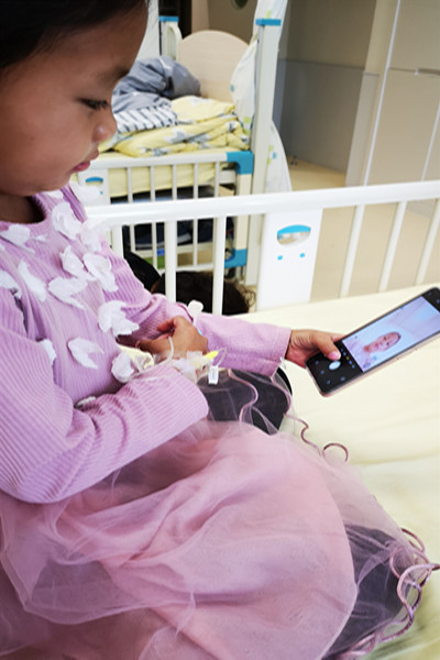 小谷先进行手术,我们赶来小谷的床前给她加油打气,手术非常成功,一回到病房,谷爸爸深情地望着自己的女儿好久好久,激动地说不出话来,迫不及待地与在老家的谷妈妈视频电话,谷妈妈开心地说女儿现在比自己还要漂亮呢。