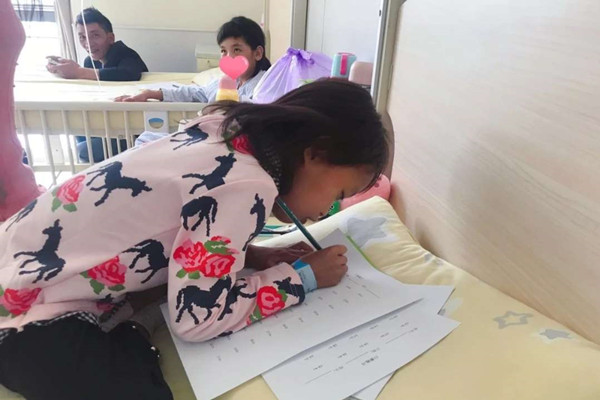 小梅小谷术后恢复期间,扶众志愿者一如既往坚持给姐妹俩送营养餐,叮嘱吃药,每天监督姐妹俩按时完成作业。