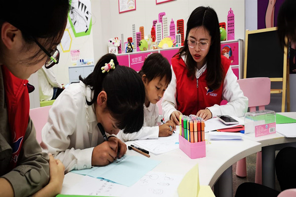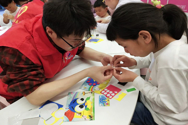 当看到乐园有彩笔和纸的时候,他们问昂起笑脸志愿者"我们也可以用这些吗?""可以的呀。"原来两姐妹是想给这些天以来帮助自己的人制作感谢贺卡呢。