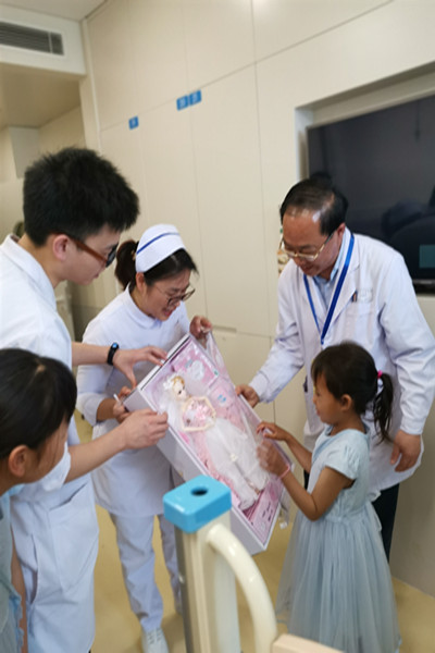纵有千般不舍,终有离别时,出院的一天即将到来。色色啦 医学发展医疗救助基金会理事长金福年给两姐妹送了所有小女孩都梦寐以求的芭比娃娃,愿两个小孩子可以像天使一样美丽可爱。瑞华志愿者也送了书包鼓励姐妹俩要好好学习。医务社工准备了两个发箍,"我们一起约定的,走得时候一定漂漂亮亮的呀。"看着姐妹俩开心的笑容,我们相信了这世间真的有天使的存在。