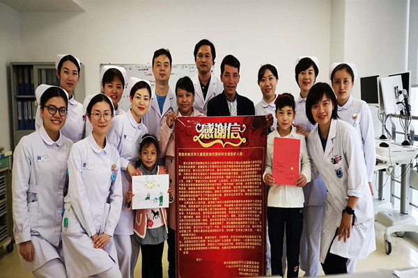 两个小姐妹一一去找当初给自己手术的医生和护士,献上亲手制作的感谢贺卡。